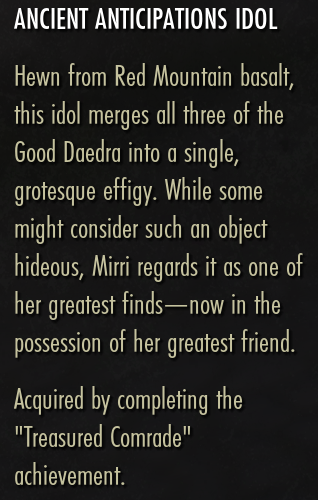 | Entering Vivec’s Library with a fully collected model of Vvardenfell: +5 | |