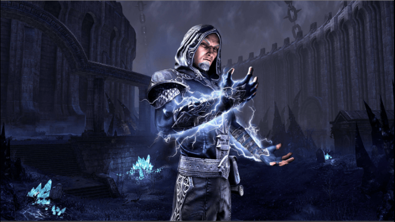 Sorcerers can use conjuration and destruction spells to hurl lightning bolts, wield dark magic to snare and stun, and summon Daedric combat followers from Oblivion. As a Sorcerer, unlimited power is at your fingertips, allowing you to call powerful lightning strikes from above, support your allies, suppress your enemies, or overwhelm your foes with Daedric monsters. The horrors of Oblivion and the power of lightning itself are yours to command.